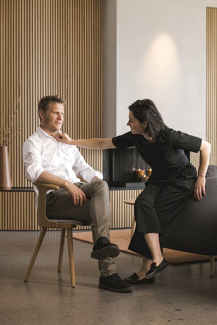 Con la ristrutturazione abbiamo reso la zona d'ingresso più leggera e libera, anche la cabina del vino ora trova il suo posto lì. Abbiamo dato struttura al ristorante classico con molte panchine e un bar aperto. Il ristorante Panorama risplende con calde tonalità di legno massiccio e nuovi mobili. Il prezioso pensiero "meno è più" è stato decisivo per noi. Sempre con la consapevolezza di incorporare le influenze della natura. La solida pietra di porfido riflette la forza e la permanenza di questo ambiente. L'uso di materiali caldi come la quercia, il lino, la pietra naturale, l'artigianato individuale e i suggestivi elementi neri nella casa creano un meraviglioso contrasto. La combinazione tra mobili classici di design e legno naturale crea un'atmosfera armoniosa. Le facciate delle finestre per la vista impressionante erano un "must-have" assoluto. La sala da tè con il suo camino aperto, la nuova sala del camino e il MIRAMONTI Bar ne beneficiano particolarmente.